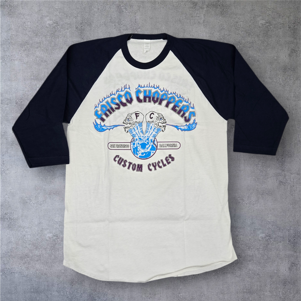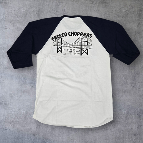 Limited edition 3/4 Frisco choppers t in navy blue sleeves with a white body